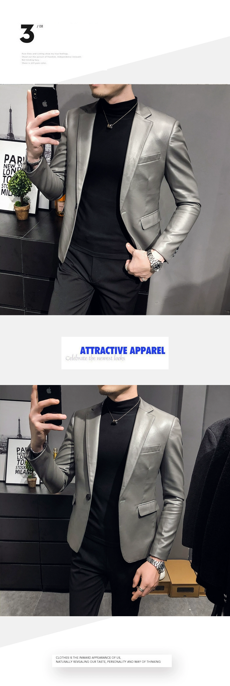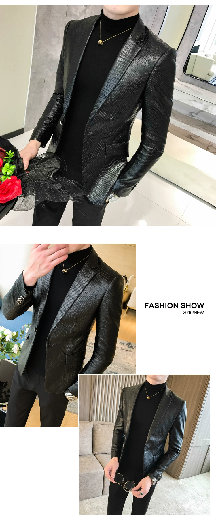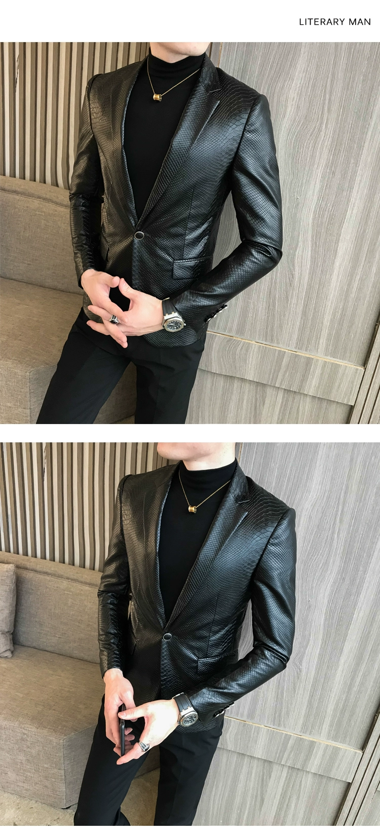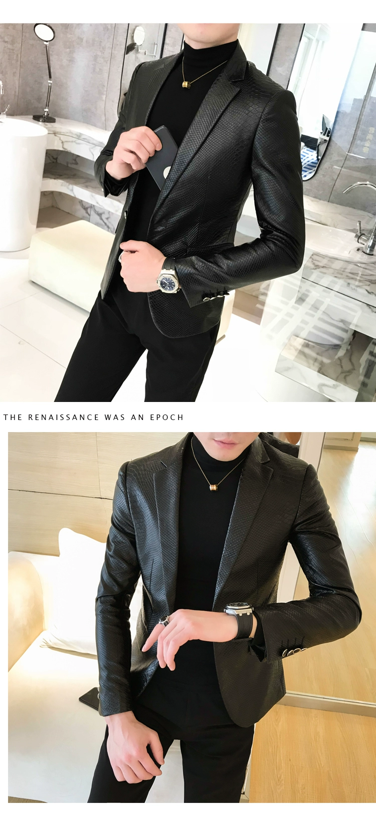 Мужской кожаный пиджак, приталенный деловой пиджак, 2021