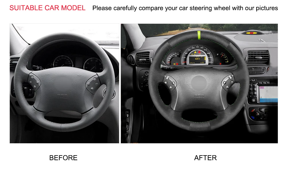 Сшитый вручную черный замшевый чехол на руль для Mercedes Benz C-Cl...