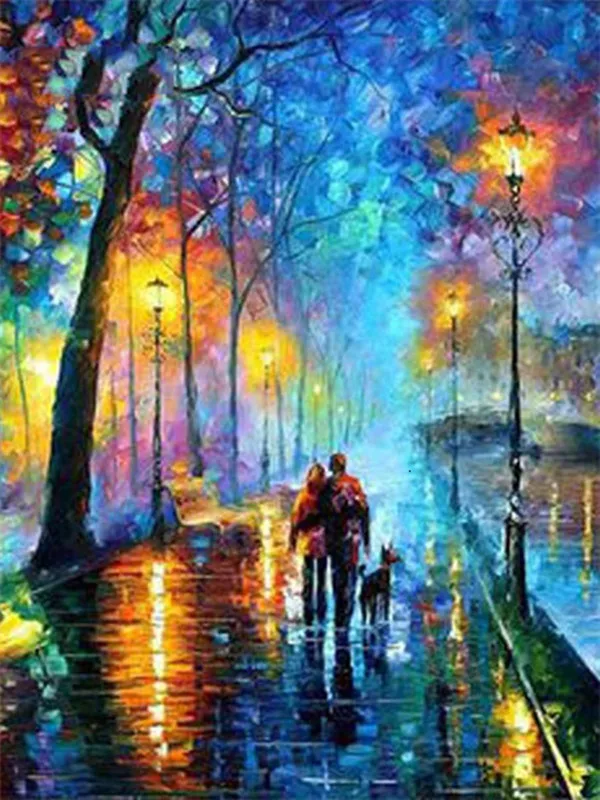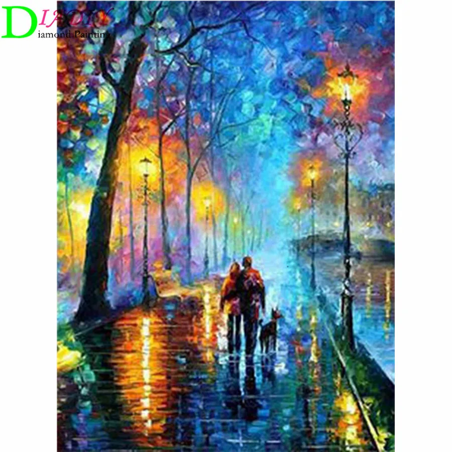 DIY алмазная живопись дождь фон с изображением улицы ночного города полная квадратная Алмазная вышивка абстрактный пейзаж Стразы мозаика для рукоделия искусства