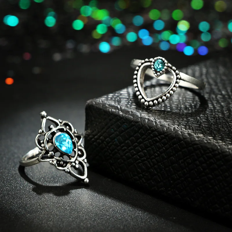 Набор женских колец с камнями в богемном стиле, ювелирные украшения для девочек, аксессуары для Слизерина с цветами, День святого Валентина
