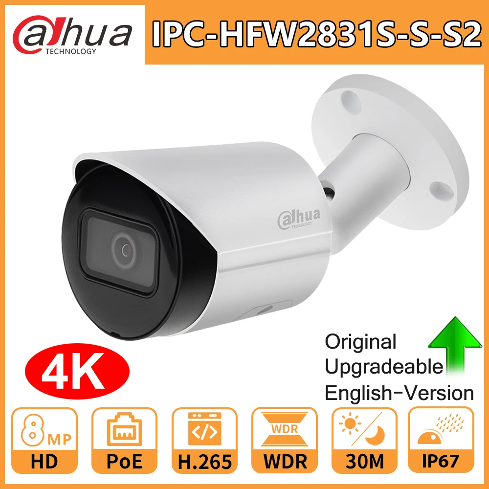 IP-камера Dahua, 8 Мп, 4K, наружная, IPC-HFW2831S-S-S2 PoE, слот для SD-карты, H.265, ИК, 30 м, IVS, IP67, оригинальное обновление