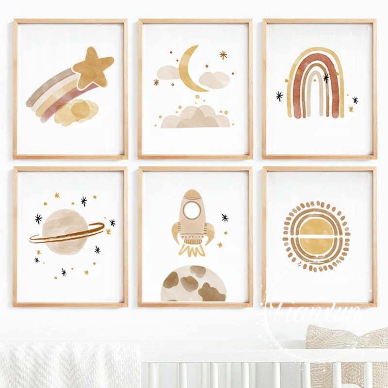 Детская Wall Art Защита от солнца с изображением ясного звездного плакаты "Земля" и принтами детская комната, украшенные забавной аппликацией Вселенная картина для детской комнаты плакат