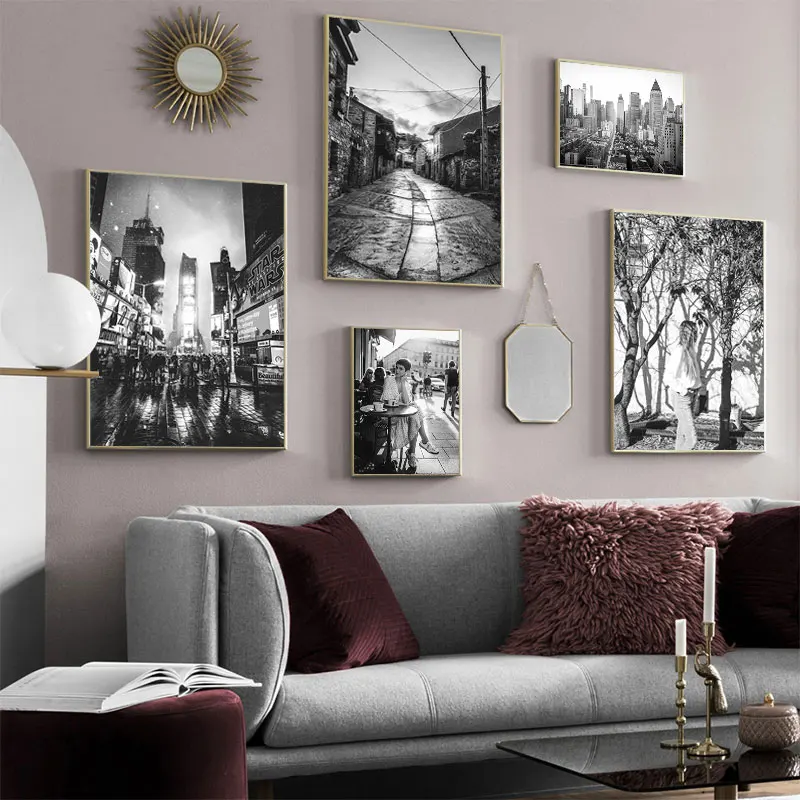 Плакат, черно-белый городской пейзаж, Нью-Йорк, Париж, принты на холсте, картины для интерьера, без рамки, украшение стены