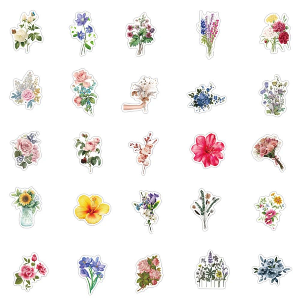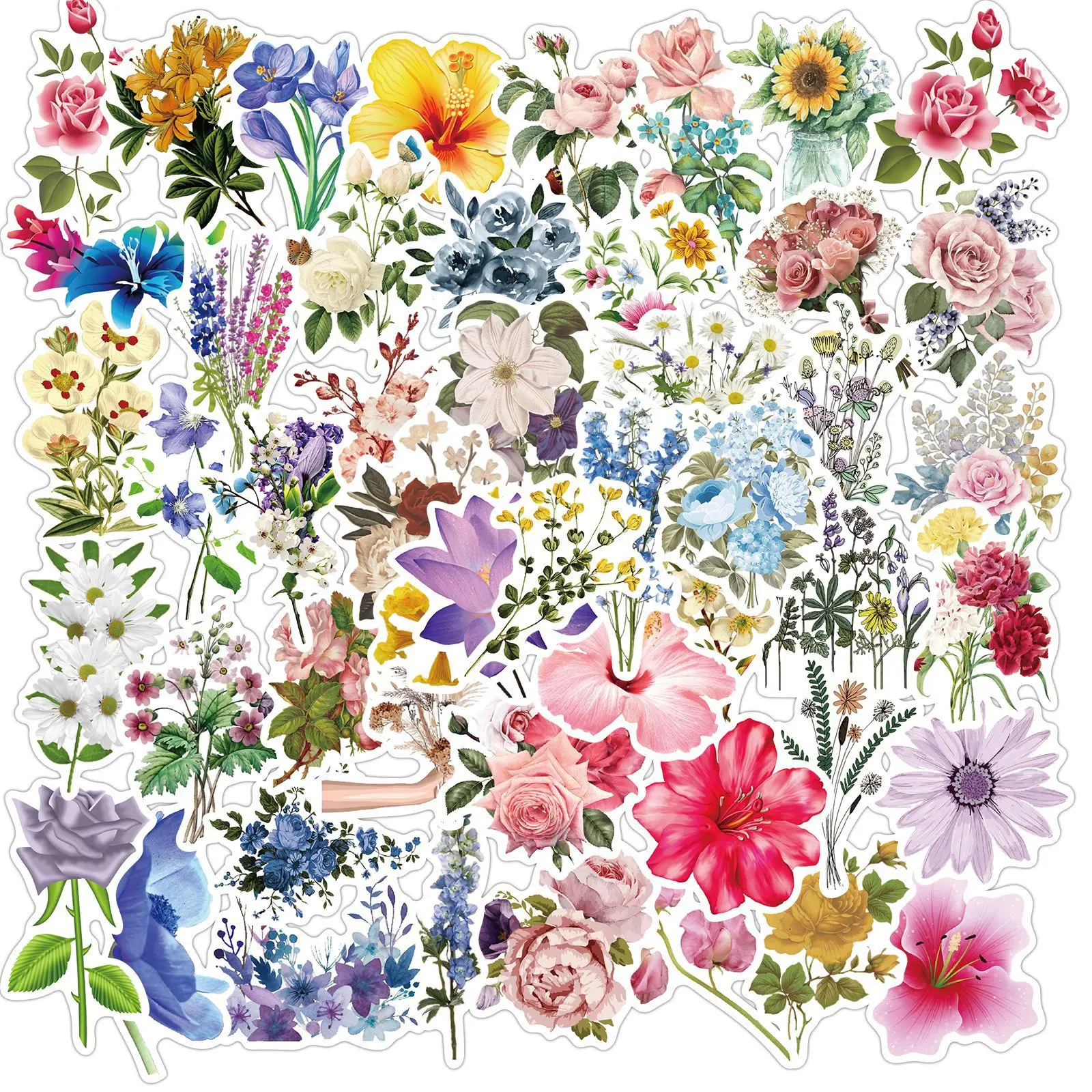 Цветочные наклейки в эстетике, корейские стикеры сделай сам для дневника, скрапбукинга, телефона, ноутбука, чемодана, подходящие для гитары, автомобиля, игрушки, украшение, 103050 шт.