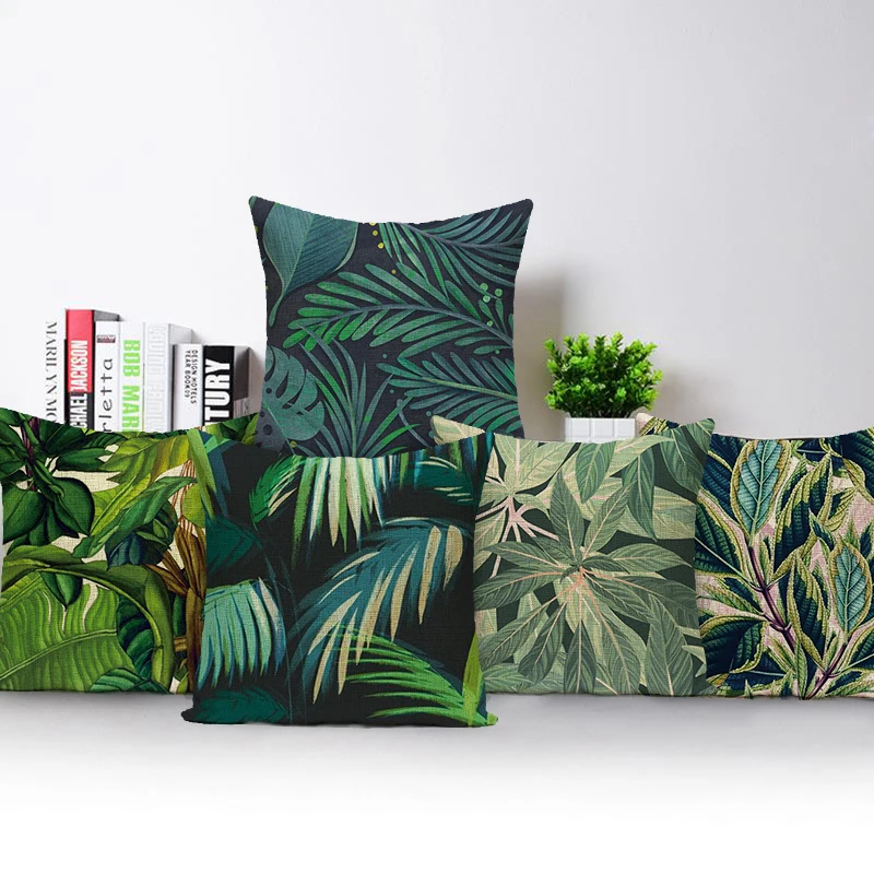 Декоративные подушки из полиэстера, тропические зеленые растения, л...