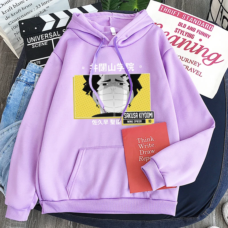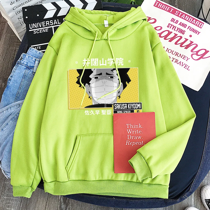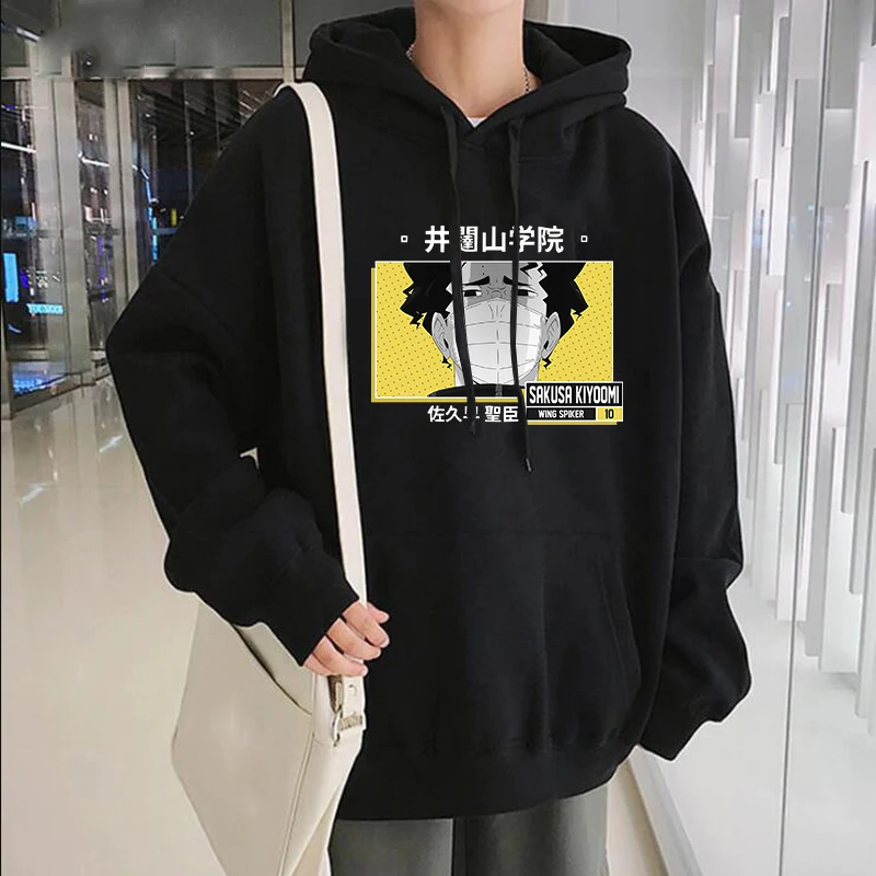 Японское аниме Харадзюку, черные толстовки с принтом Аниме Haikyuu Sakusa Kiyoomi, женские свитшоты с забавным мультяшным принтом манга и длинным рукавом, уличная одежда