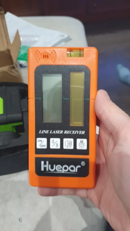 ➤ Импульсного режима:● Разблокируйте маятник, нажмите и удерживайте кнопку питания (около 5 секунд), чтобы включить импульсный режим, затем включите красный.● Когда требуется наружная работа (приемник должен быть приобретен отдельно, лазерный приемник LR510 может получать импульсы.● Частота приемника составляет 10 кГц, а бренд Huepar-лучшее сопряжение.