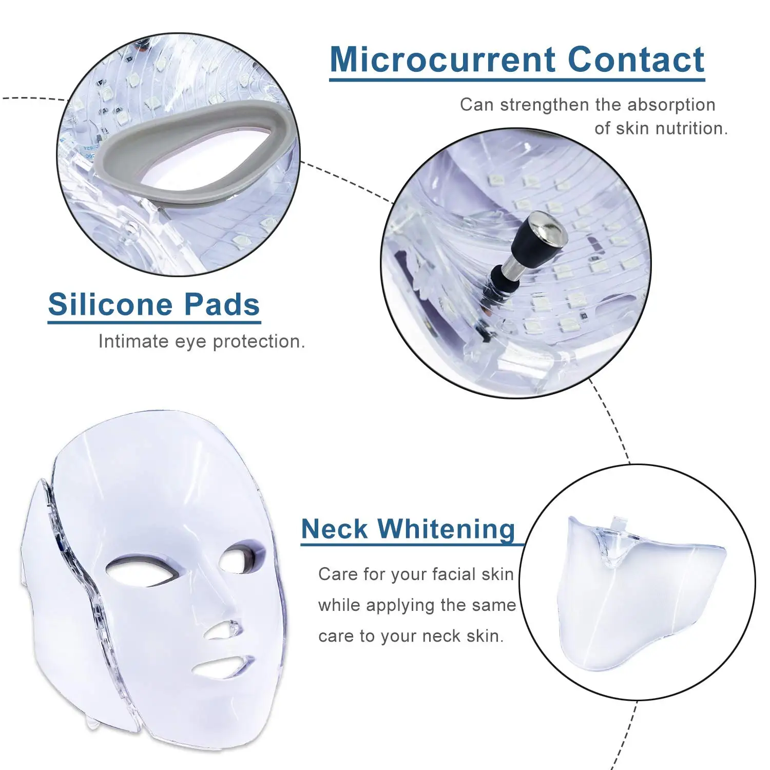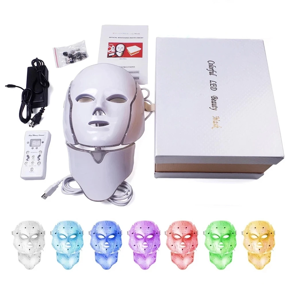 7 цветов светодиодный маска для лица светодиодный корейский Фотон терапия машина маски светильник терапии лечения акне маска шеи Красота устройств светодиодный маска для лица