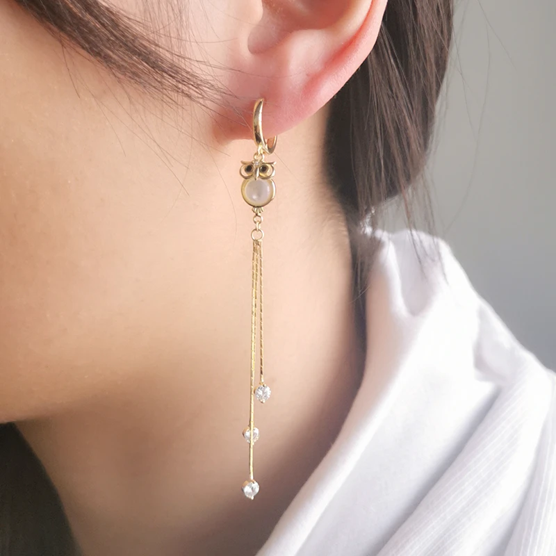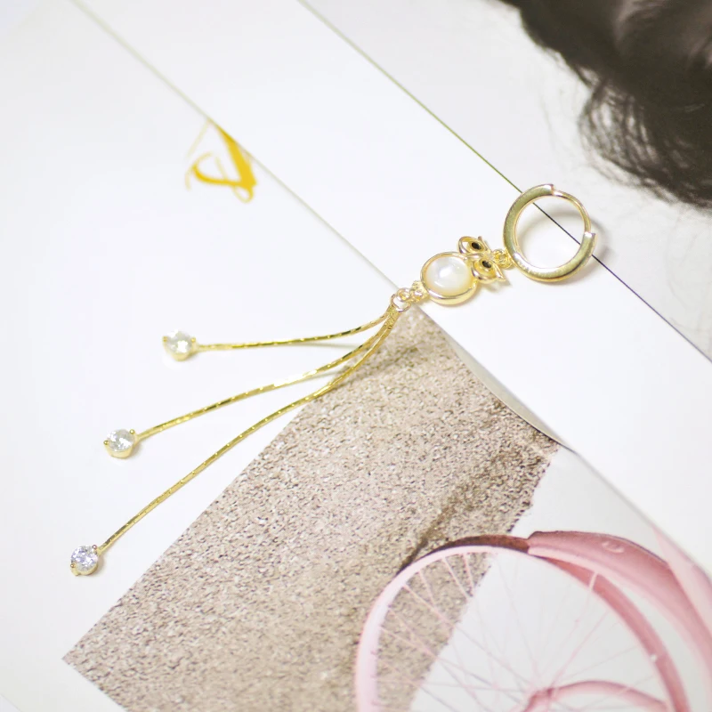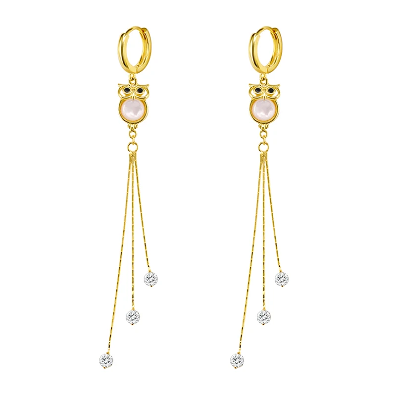 Милые длинные висячие серьги с совой из стерлингового серебра 925 пробы с пряжкой для ушей, серьги-цепочки из циркона для женщин, модные ювелирные изделия, аксессуары