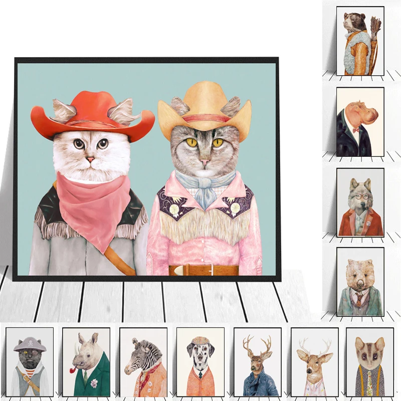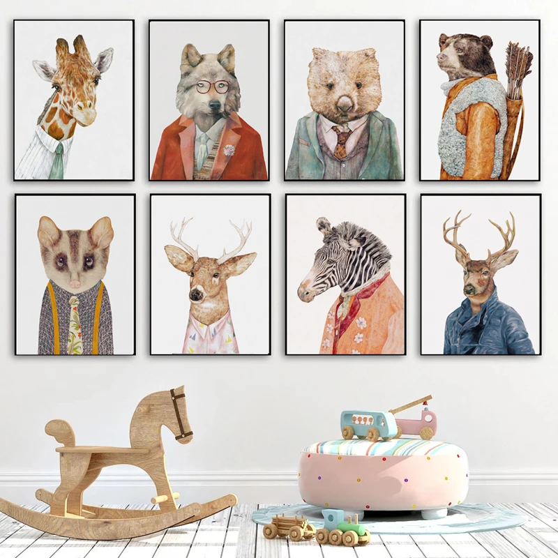 Декоративные листы с мультяшными животными, настенный художественный постер, Детские холсты, картины для комнаты, декоративные принты, настенные постеры