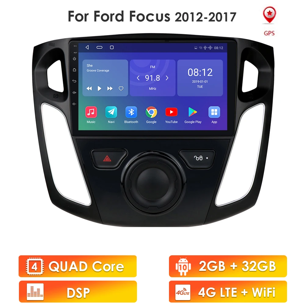 Автомагнитола 2 Din для Ford Focus 3, мультимедийный видеопроигрыватель на Android 10, с GPS, 9-дюймовым сенсорным экраном, 4G LTE, 2012, 2013, 2014, 2015