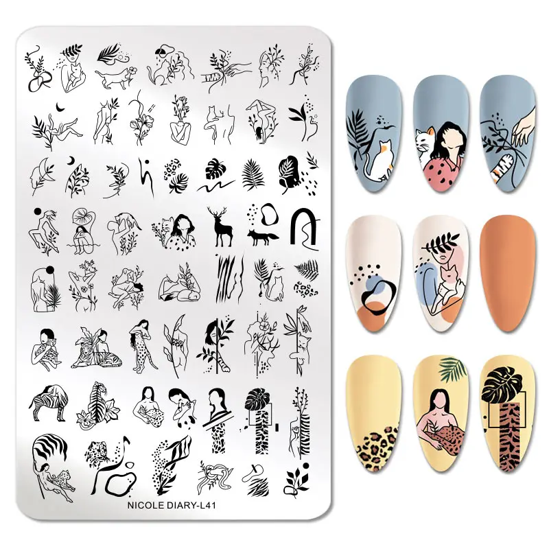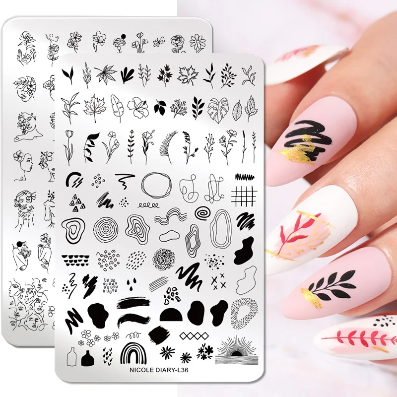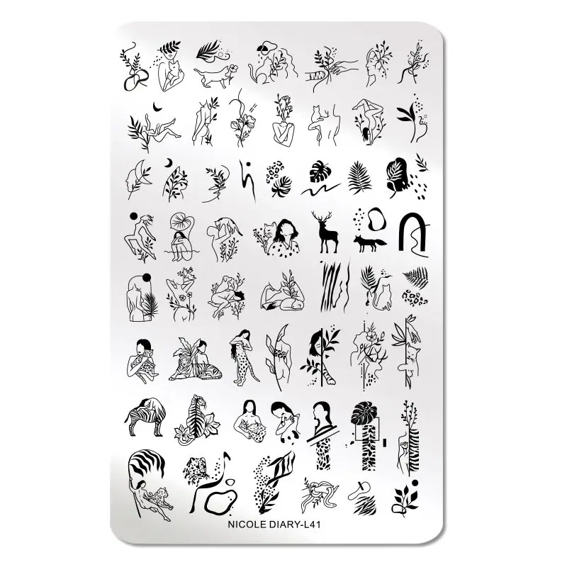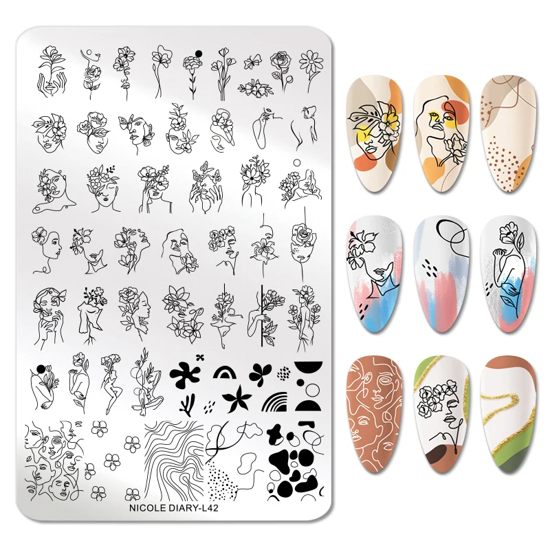 Трафарет для стемпинга ногтей NICOLE DIARY из нержавеющей стали с абстрактным изображением лица