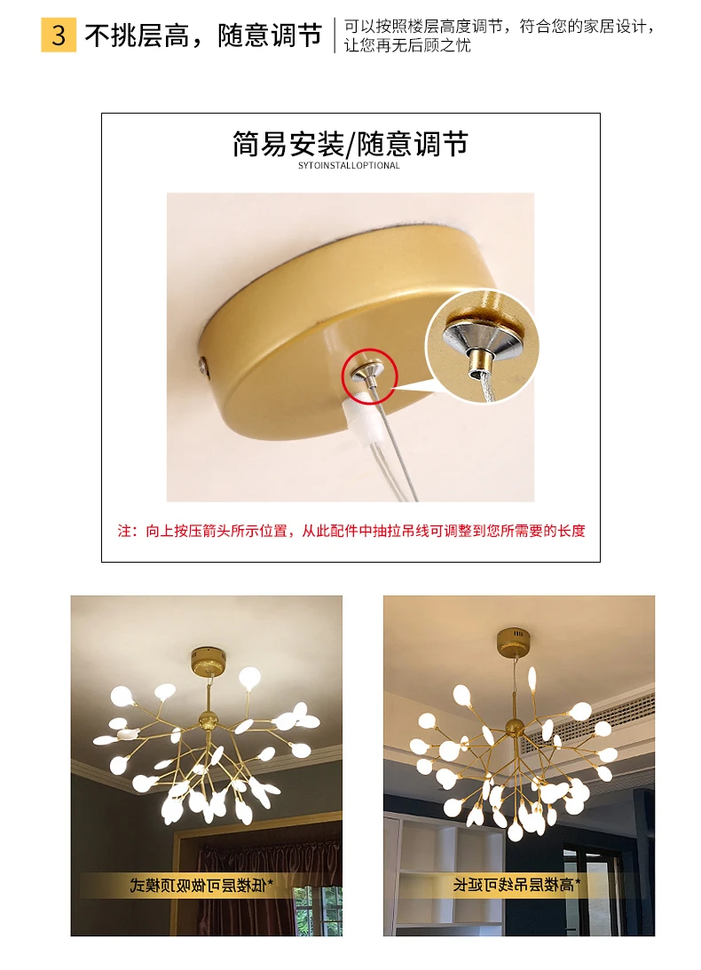 Описание[Основной материал]: алюминий + акрил[Входное напряжение]: 220 В(Пожалуйста, обратите внимание на напряжение или свяжитесь с нами при размещении заказа!)[Цвет товара]: Золотой/черный[Размер товара]: Пожалуйста, проверьте страницу с подробностями[Информация о источнике света]:Тип светодиодныйВключать светильник почку: Да(Примечание: лампа не участвует в гарантии)Средний срок службы: 50000 чЦвет свечения: теплый белый/холодный белый/изменяемый-без пульта дистанционного управления1. Холодный белый: нет пульта дистанционного управления.2. Теплый белый: без пульта.3. Изменяемый-без пульта ДУ: Он имеет холодный белый, естественный белый, теплый белый. Он может изменить светильник, не может регулировать яркость. Пульт дистанционного управления отсутствует.[Сценарии применения]: гостиная, столовая, спальня, кабинет, проход, бар и т. д.[Способ установки]: необходимо собрать, в коробке есть подробные инструкции по установке, если у вас возникнут проблемы в процессе установки, вы можете связаться с нами в любое время.Если полученный вами продукт поврежден или поцарапан во время транспортировки, вы можете связаться с нами.Если у вас есть какие-либо вопросы, пожалуйста, свяжитесь со службой поддержки клиентов, мы ответим вам как можно скорее.Примечания:1. При измерении вручную допускается погрешность в 1-3 мм, спасибо за понимание.2. Из-за разницы в мониторах изображение может не отражать фактический цвет изделия. Мы гарантируем такой же тип.3. Перед покупкой проверьте размер и напряжение лампы.