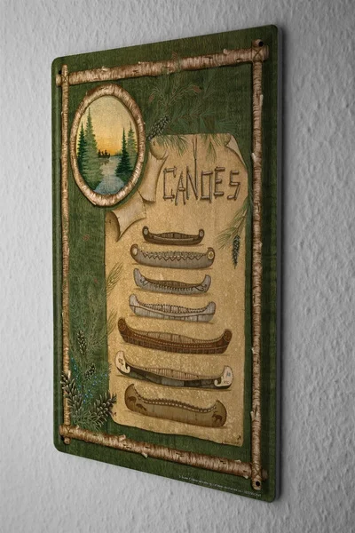 Жестяной знак Западный ковбойский индийский декор каноэ вода натуральная металлическая пластина