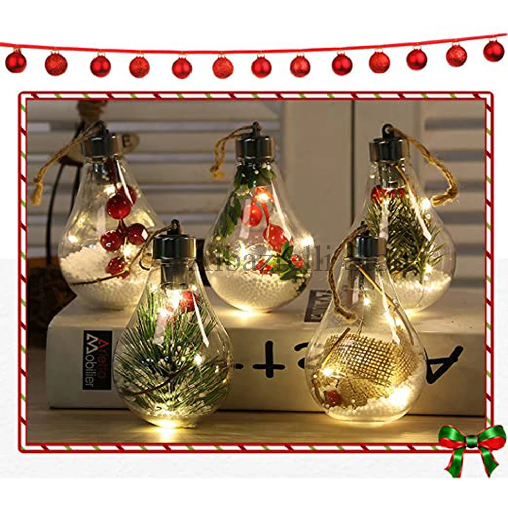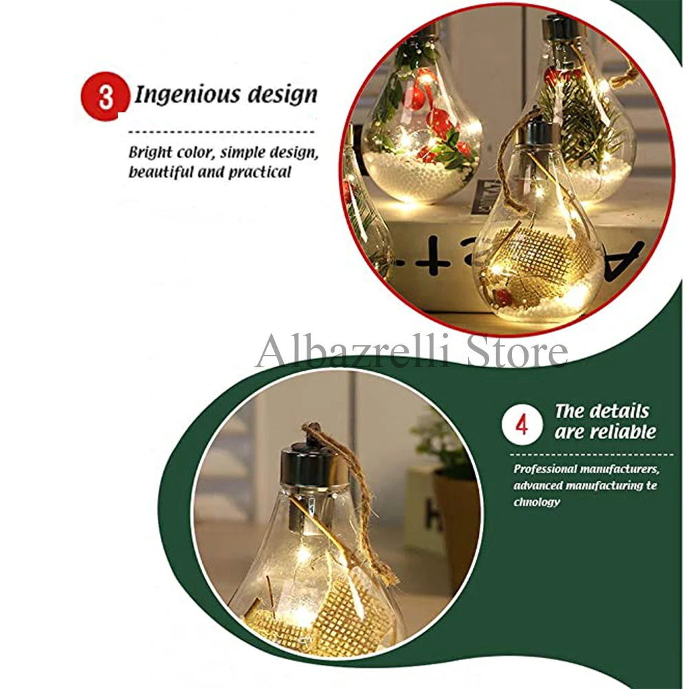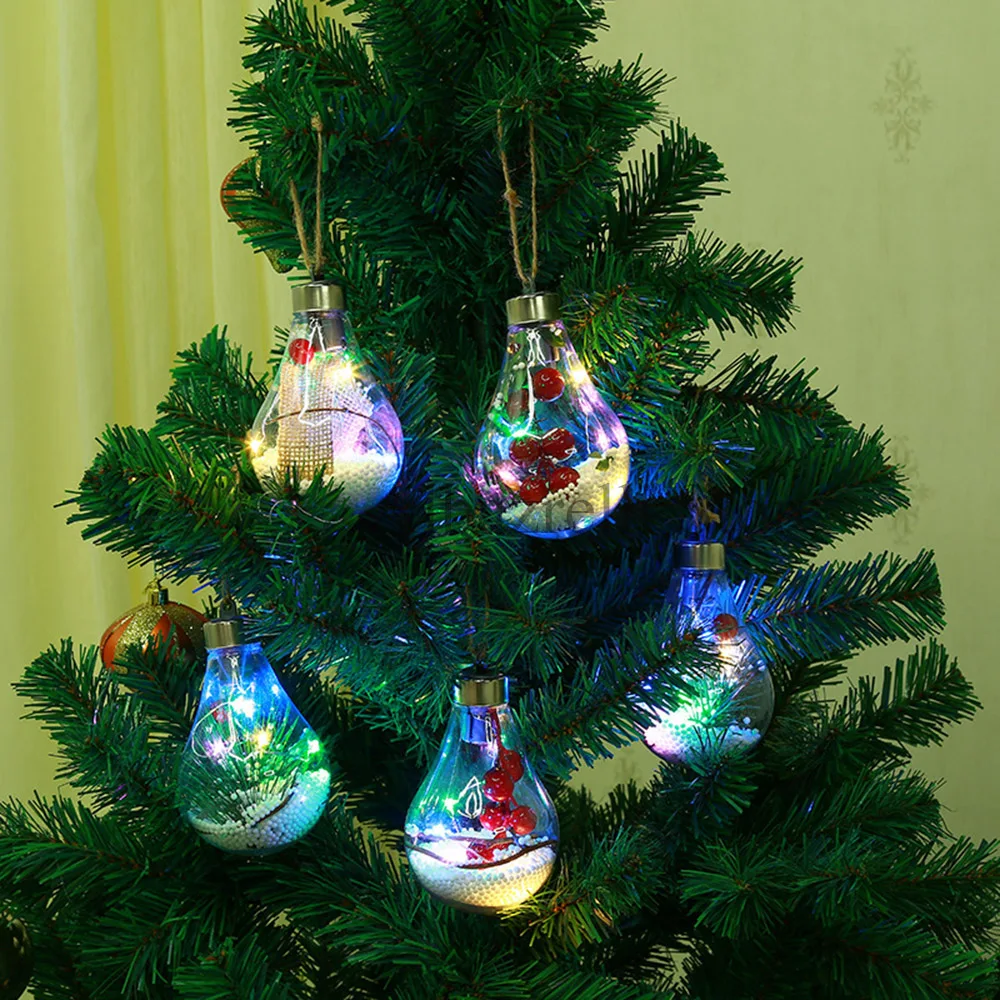 Светодиодная светящаяся прозрачная пластиковая лампа, Рождественский шар, Рождественское украшение, подвеска на рождественскую елку, подарок, украшение для сада, для улицы