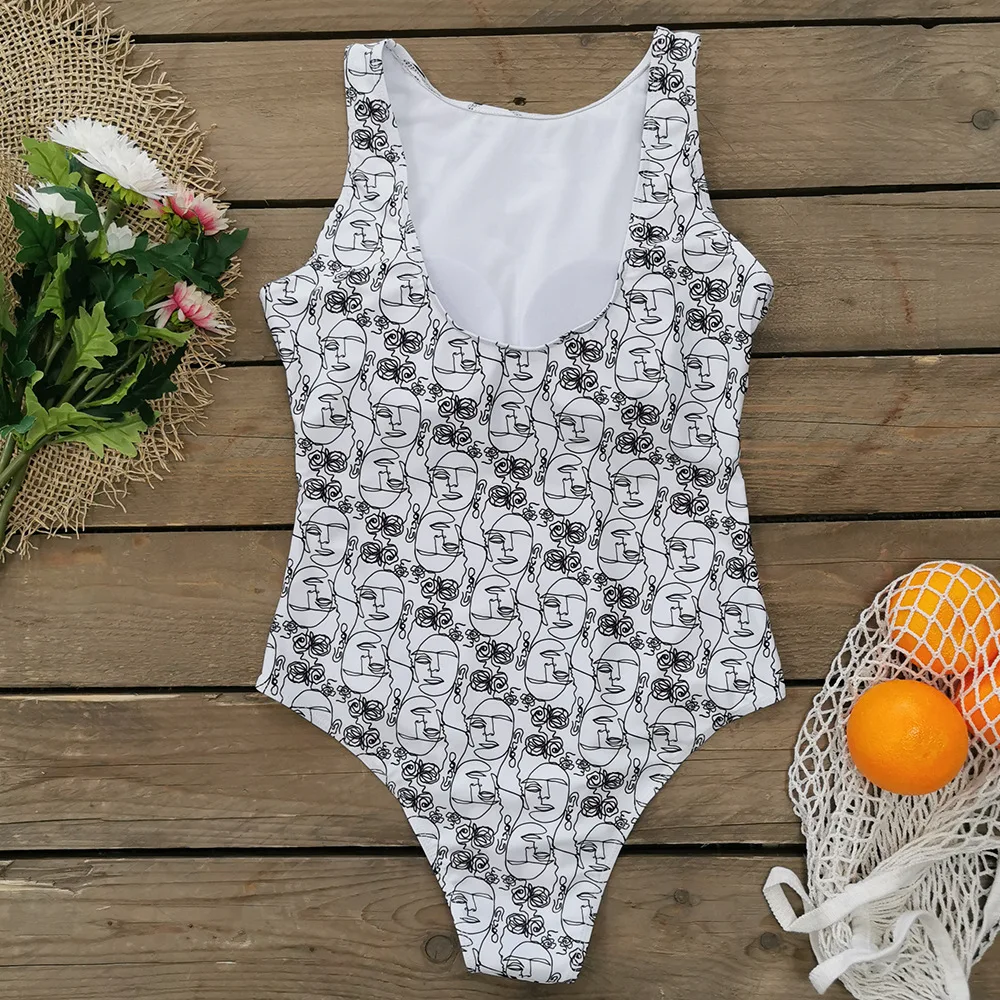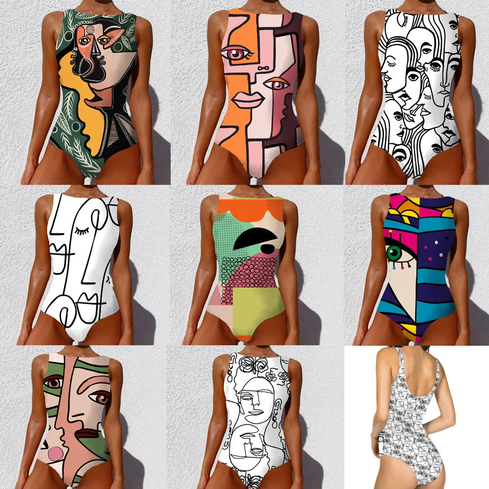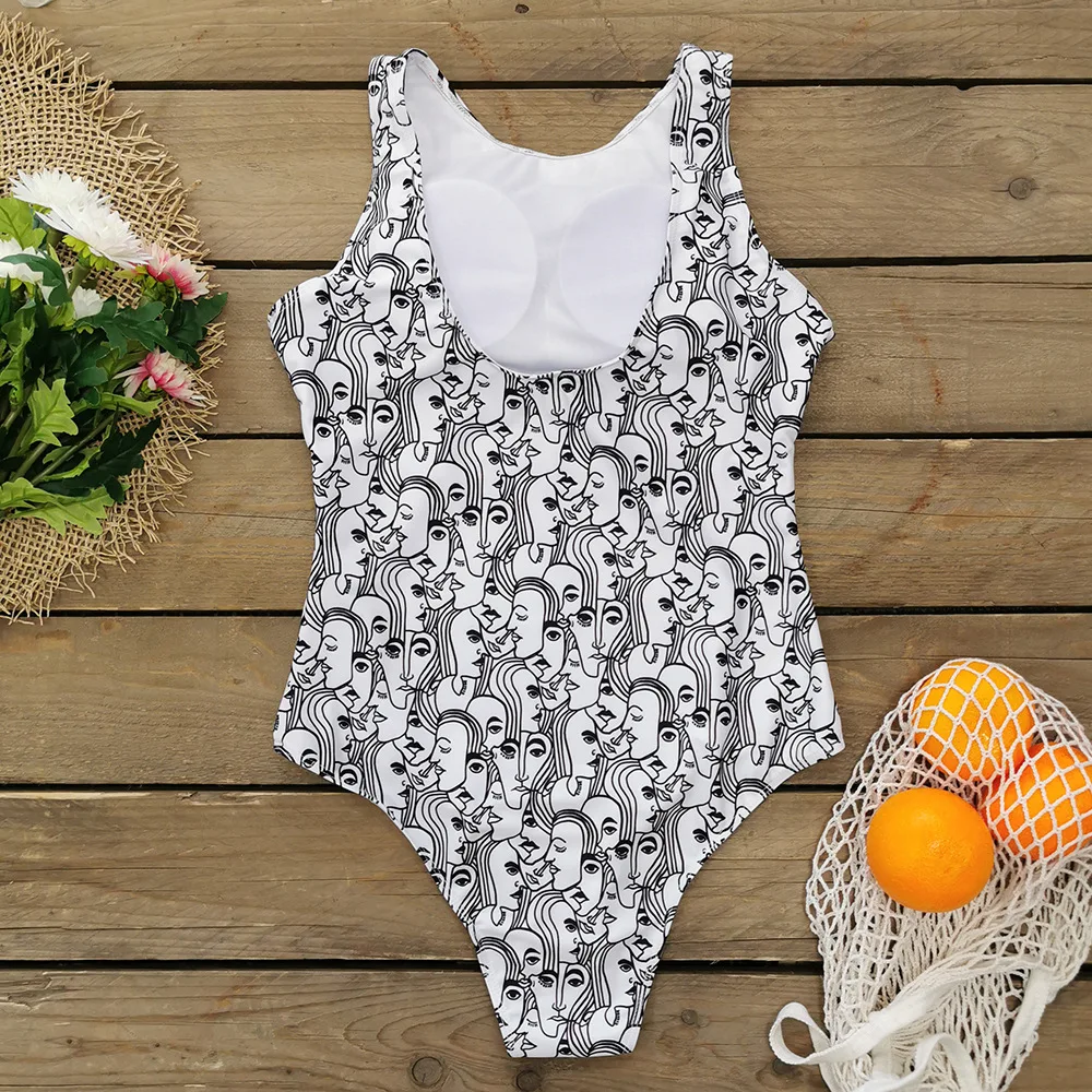 Купальник женский без рукавов, пикантный слитный купальник с открытой спиной, бикини с абстрактным принтом, Модный летний женский купальник
