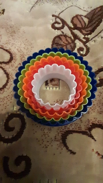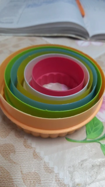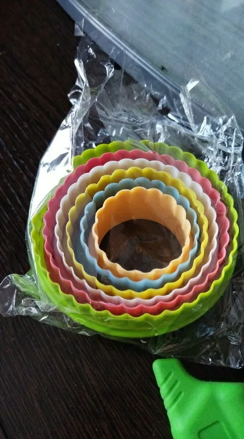 Формы пришли очень быстро. Цвета гораздо бледнее/грязнее чем на картинке, ну это ладно, всё-таки цвет не важен в форме для выпечки, ну так-как мы всё-таки девочки, то какой-то осадочек это оставляет. Но самое главное, что очень плохо обработаны края на рифленой стороне. На фото видно. Сразу ровно и хорошо резать тесто это не даст, попробую исправить это пилочкой для ногтей, надеюсь поможет. Пластик тоненький, хлипенький, ну да ладно, за такую цену, сойдёт. Всех с наступающим.