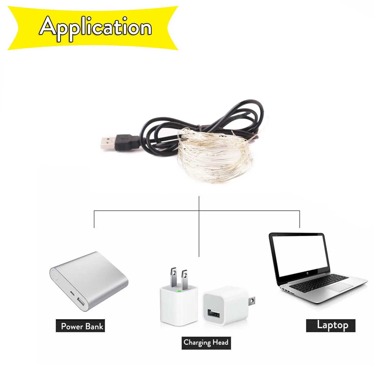50 100 светодиодов USB светодиодный светильник s Медный Серебряный провод гирлянда светильник водонепроницаемый Сказочный светильник s для рождественской свадебной вечеринки
