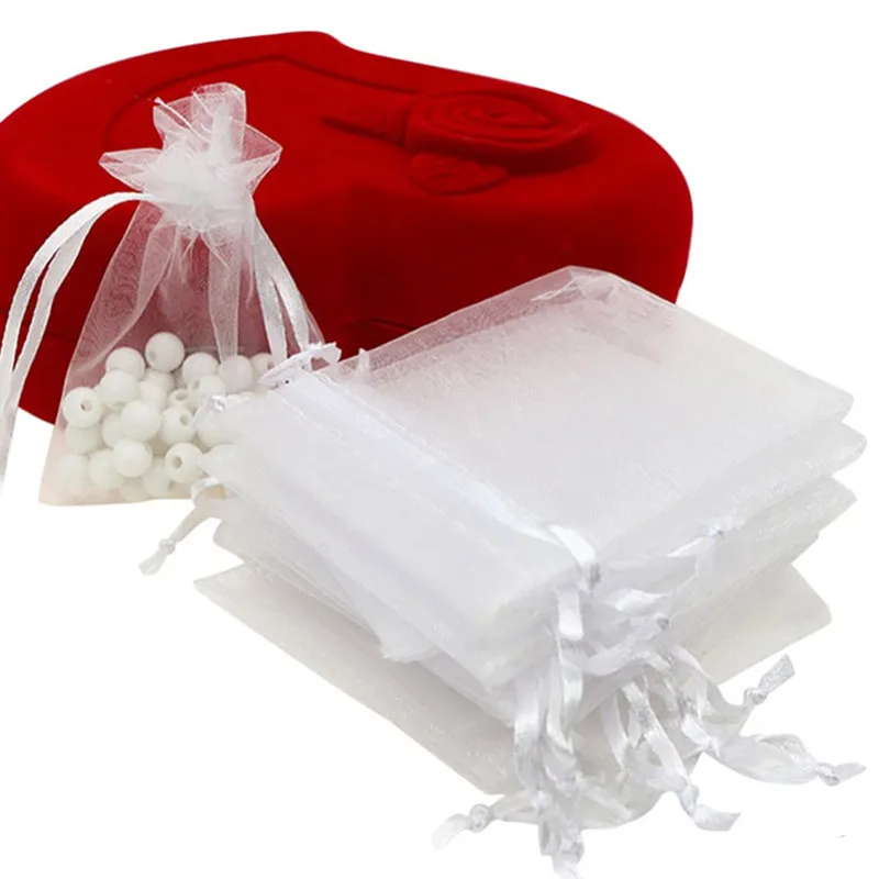 100 шт. 7x9 9x12 10x15 11x16 13x18 15x20 17x23 см Сумка из органзы для упаковки ювелирных изделий и подарочный декоративный пакет