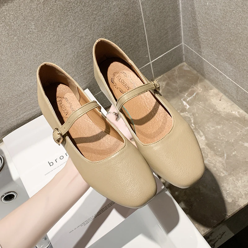 Туфли женские весенние на плоской подошве, с ремешком на щиколотке