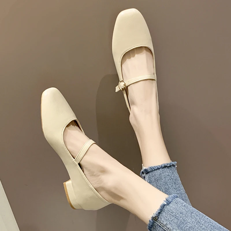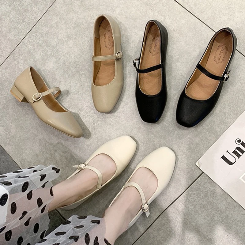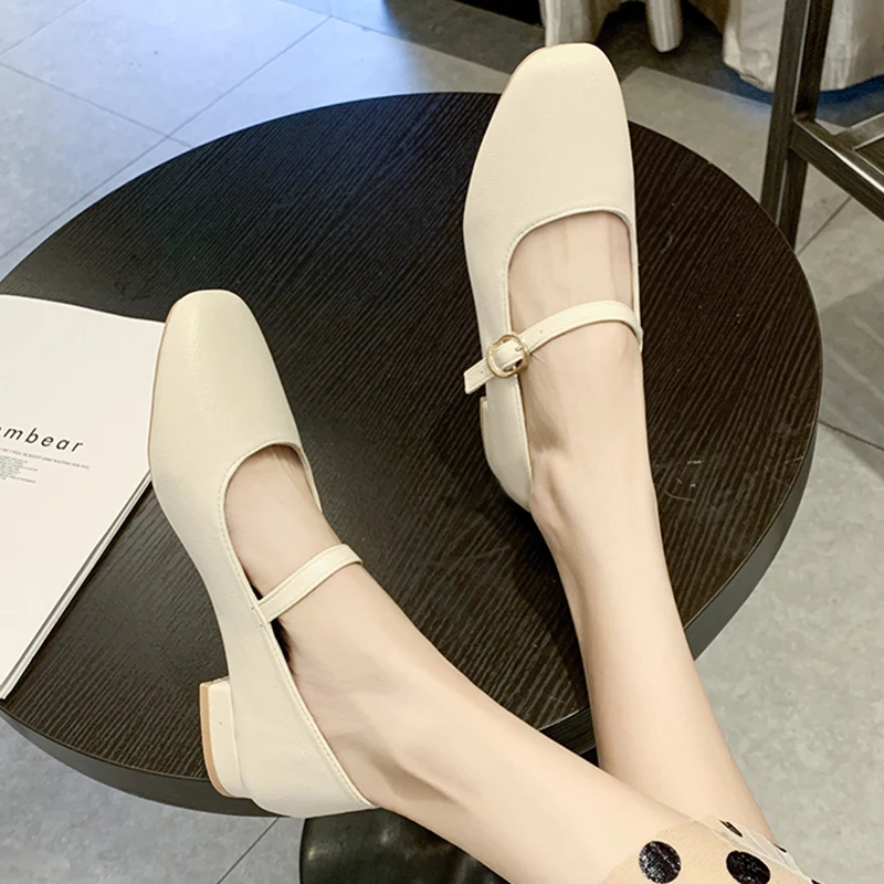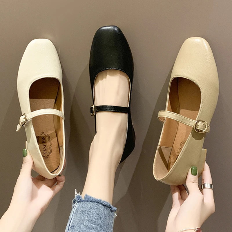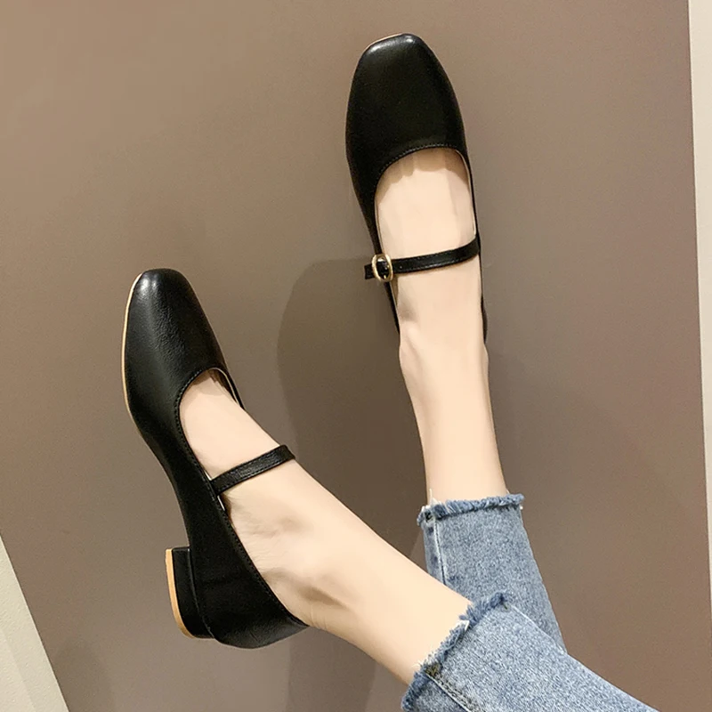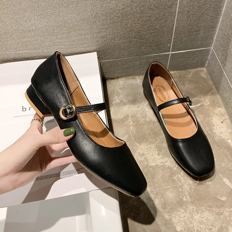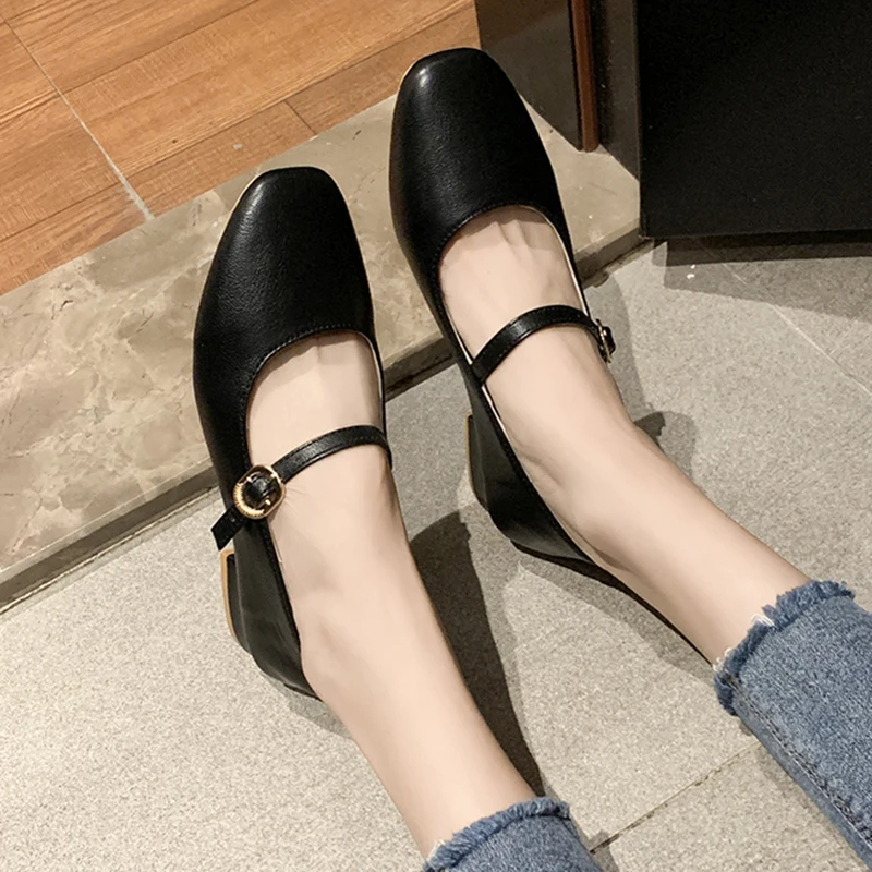 Демисезонные женские туфли мэри джейн на плоской подошве модельные туфли на низком каблуке черные туфли-лодочки с квадратным носком и ремешком с пряжкой офисная обувь в стиле ретро 9002C