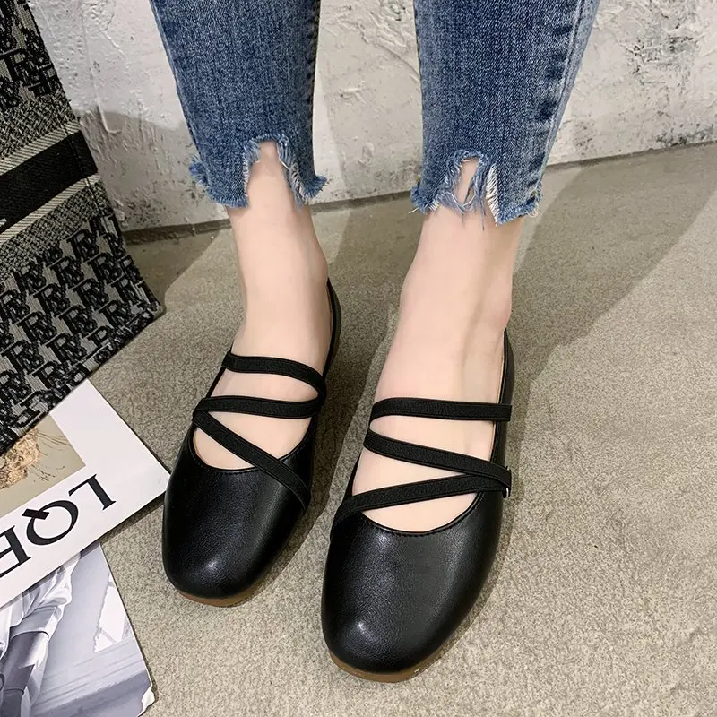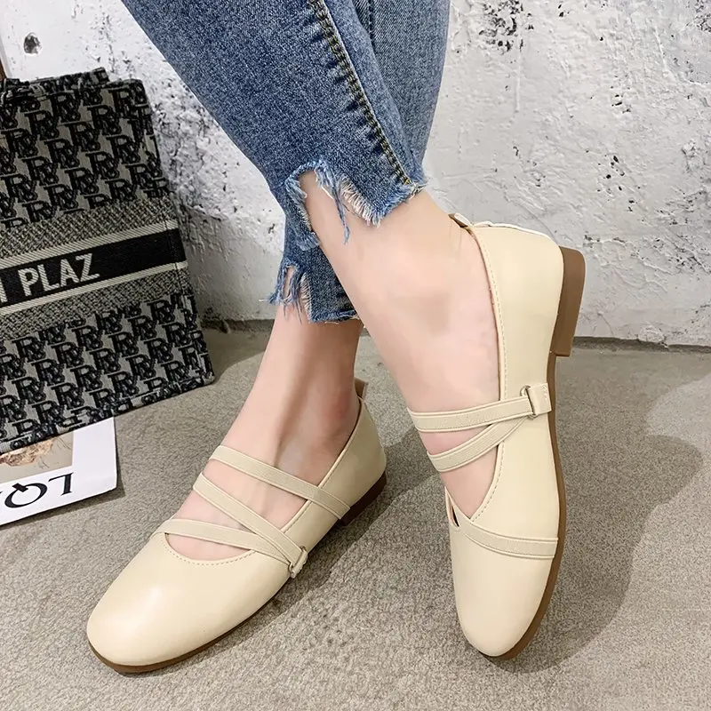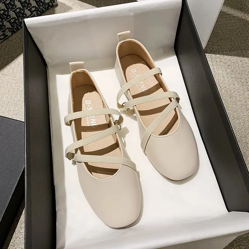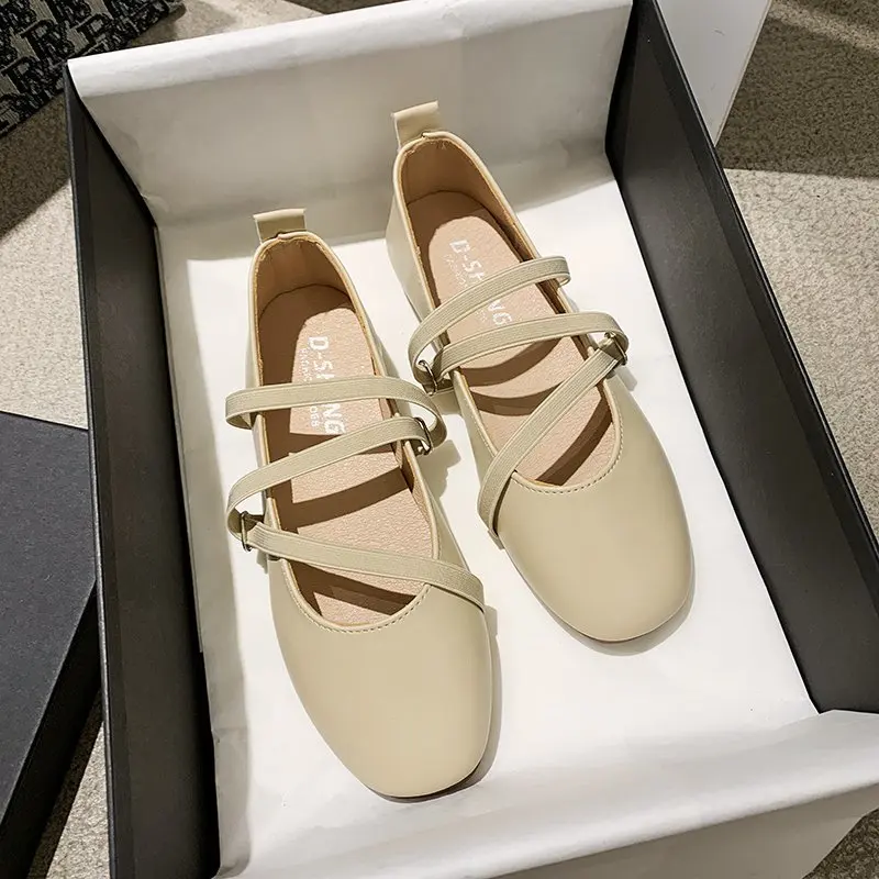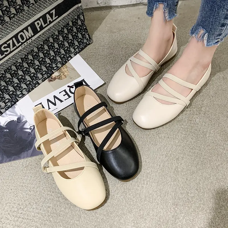Балетки женские на плоской подошве, удобные туфли мэри джейн с эластичным ремешком, без застежки, повседневная обувь, 9010C, весна-осень