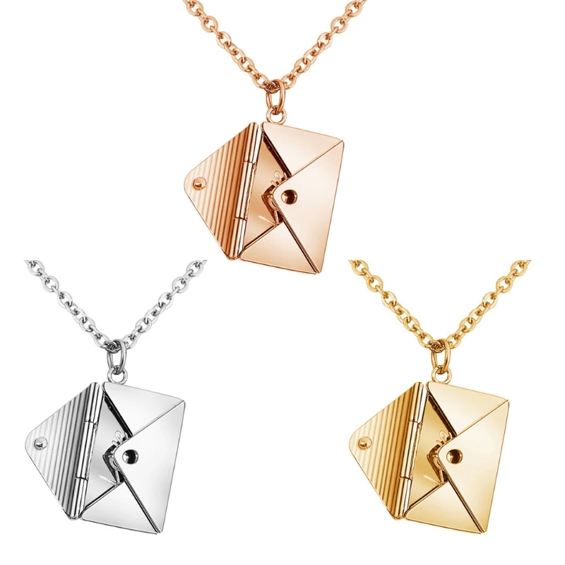 Любовь кулон конверт Цепочки и ожерелья сердце печать любовное послание медальон кулон Цепочки и ожерелья