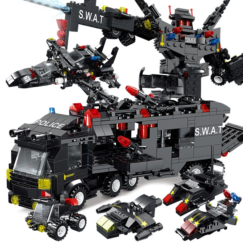Серия городской спецназ, мобильный полицейский участок, транспортный автомобиль, грузовик, робот, модель, кирпичи, Детский конструктор сделай сам, игрушка для детей, подарок