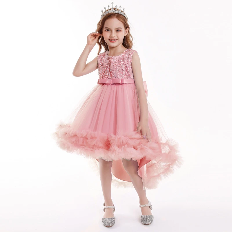 Новинка 2022, летнее розовое платье на день рождения для девочек, детские белые свадебные платья, Детский костюм, кружевное праздничное платье принцессы, юбка-годе для девочек