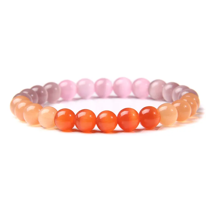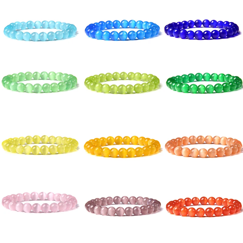 Модный разноцветный браслет кошачий глаз, гладкий яркий опал, 7 чакр, браслеты для женщин и мужчин, эластичная веревка, милая энергия рейки, ювелирные изделия