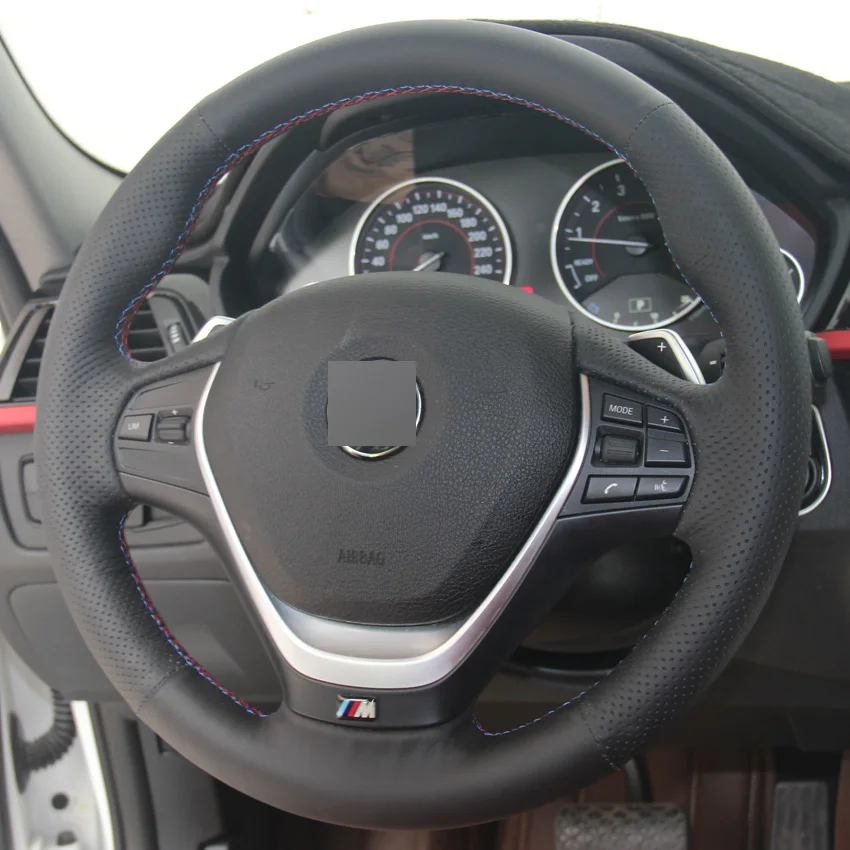 Черная искусственная кожа DIY ручной работы без скольжения чехол рулевого колеса автомобиля для BMW F20 F21 F22 F23 F30 F31 F34 F32 F33 F36
