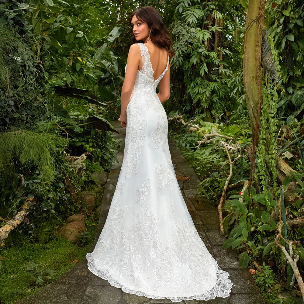Женское свадебное платье с юбкой-годе, кружевное платье без рукавов с V-образным вырезом, открытой спиной и блестками, винтажное платье невесты, 2021