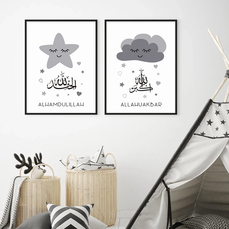 Исламский Bismillah звезды облака розовый постер для детской комнат...
