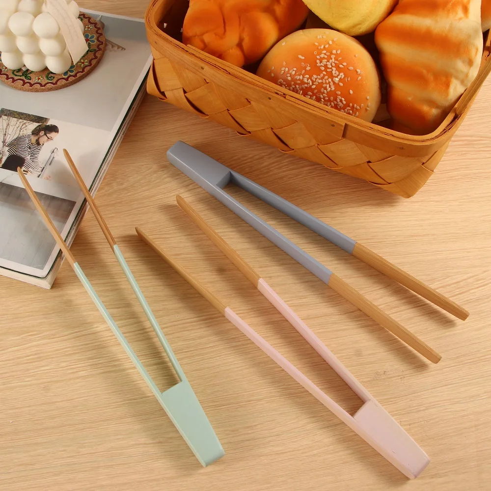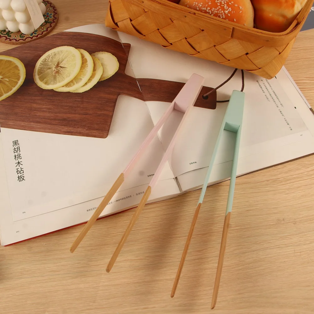 Деревянный зажим для салата, бекона, стейка, хлеба, пирожных, бамбуковые кулинарные щипцы, силиконовая ручка, инструмент для барбекю, домашняя кухонная утварь