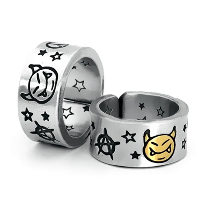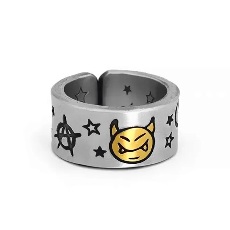 Горячая Распродажа Devils уход за кожей лица Star штамп Тибетский кольцо большой ретро Мода Винтаж Открыть Регулируемые кольца Специальный любимой Регулировка размера кольцо