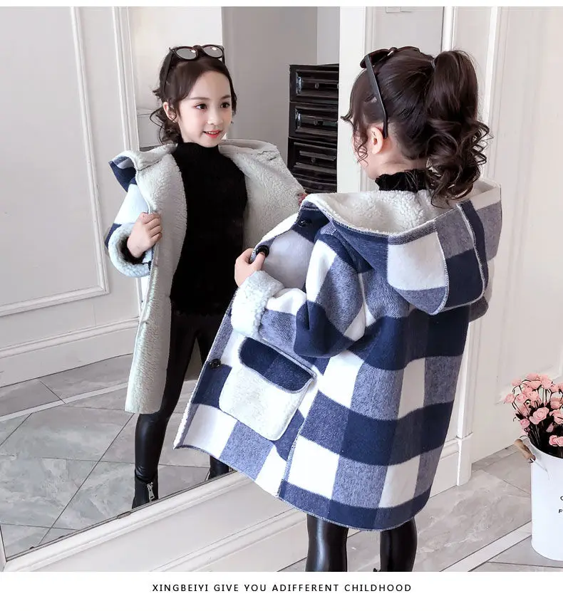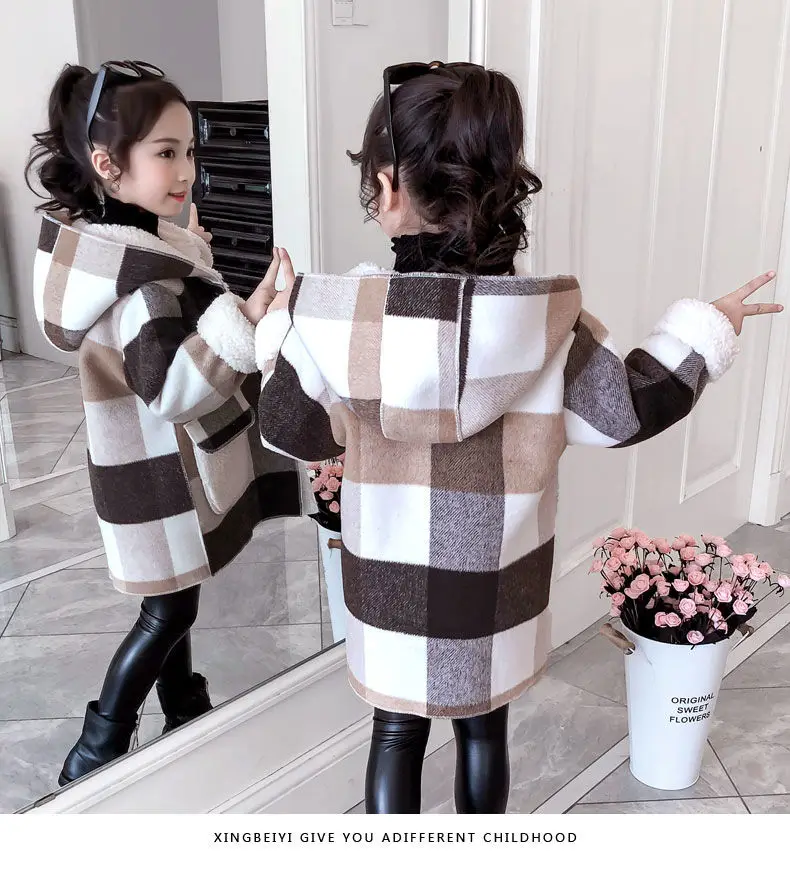 Модная куртка для девочек на осень и зиму, длинное клетчатое пальто...