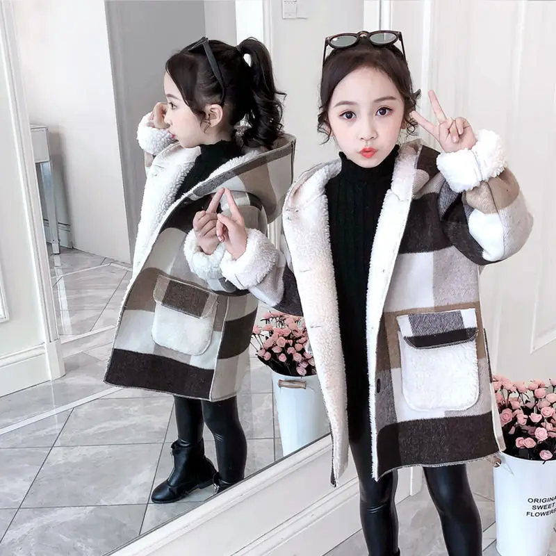 Зимнее шерстяное пальто для девушек, новинка 2021, плотное кашемиро...