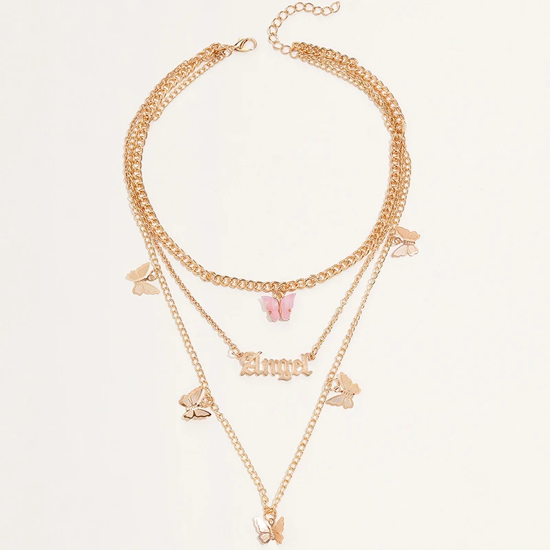Женское Ожерелье Aprilwell в эстетике золотистого цвета с кубинскими звеньями, цепочка на воротник, одежда, Бабочка, ангел, модное Ювелирное Украшение