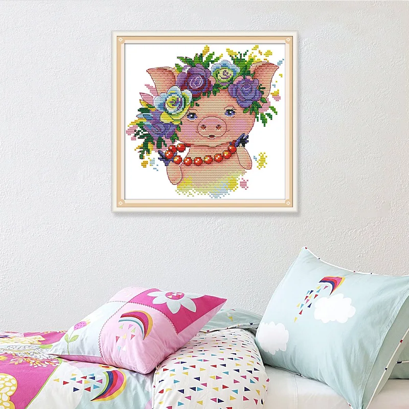Наборы для вышивки крестиком для взрослых начинающих детей 11CT DIY Набор для вышивки рукоделия-Pretty Pig 28X27cm