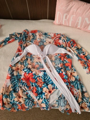 Лиф хорошо поддерживает грудь, имеются вшитые поролоновые чашечки, которые придают обалденный объем груди Лямки регулируются, лиф застёгивается на металлическую застежку. Фурнитура у купальника вся металлическая, качественная, после стирки не ржавеет. Трусишки средней посадки, на ластовице имеется гигиеническая бумажная наклейка. Купальник хорошо подходят для загара и для активных видов спорта, например для бега и пляжного волейбола. Туника прекрасно дополняет купальник. После пляжа можно накинуть ее и пойти прогуляться по набережной, поужинать на берегу моря Качество пошива отличное. Швы ровные, без перекосов и торчащих ниток. Рекомендую к покупке!!!#алиэкспресс #aliexpress