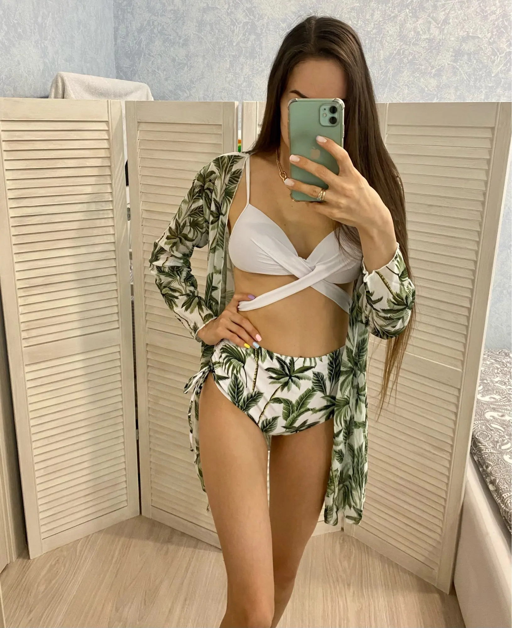 2022 сексуальный комплект бикини и обложки, женский купальник с принтом, купальник с высокой талией, летний купальный костюм на бретельках, пляжная одежда, бикини для женщин
