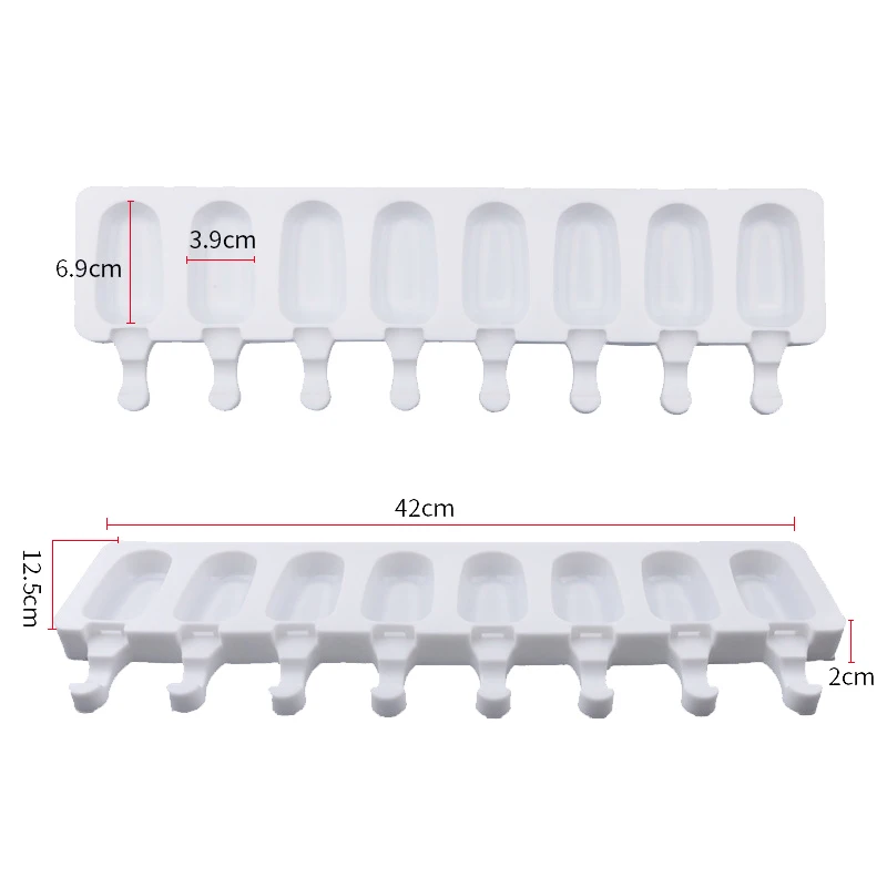 Материал: Изготовлен из мягкого высококачественного силикона, нетоксичный и антипригарный. Высококачественные деревянные палочки в подарок покупателюПолость Размер: 2,75x1,5x0,59 дюйма/7x4x1,5 см (Длина * Ширина * Высота)Размер товара: 42x12,5x2 смШирокое применение: подходит для приготовления мороженого, мини-мороженого, сосульки, Фруктового мороженого, мороженого magnum, шоколада эскимо, Фруктового мороженого, ФаджПростота в использовании: легко выводится после замораживания. Просто нажмите большой палец вверх от нижней части каждой полости, и ваши скольженияЦвет: белыйПосылка:1 x форма для мороженого50 деревянных палочекТолько вышеуказанная посылка, другие товары не включены.Примечание: светильник и различные дисплеи могут привести к тому, что цвет товара на картинке немного отличается от реального. Допускается погрешность в измерениях +/- 1-3 см.