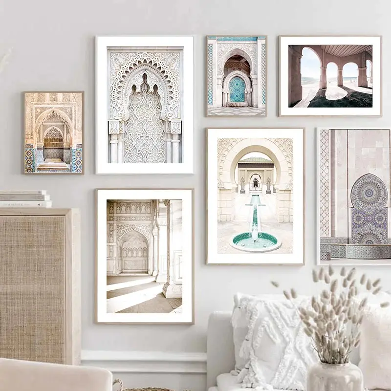 Исламский архитектурный постер, марокканская дверь, настенная Художественная печать, арабское здание, холст, стены мусульманские рисунки для современного домашнего декора
