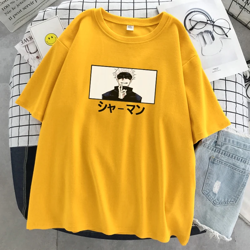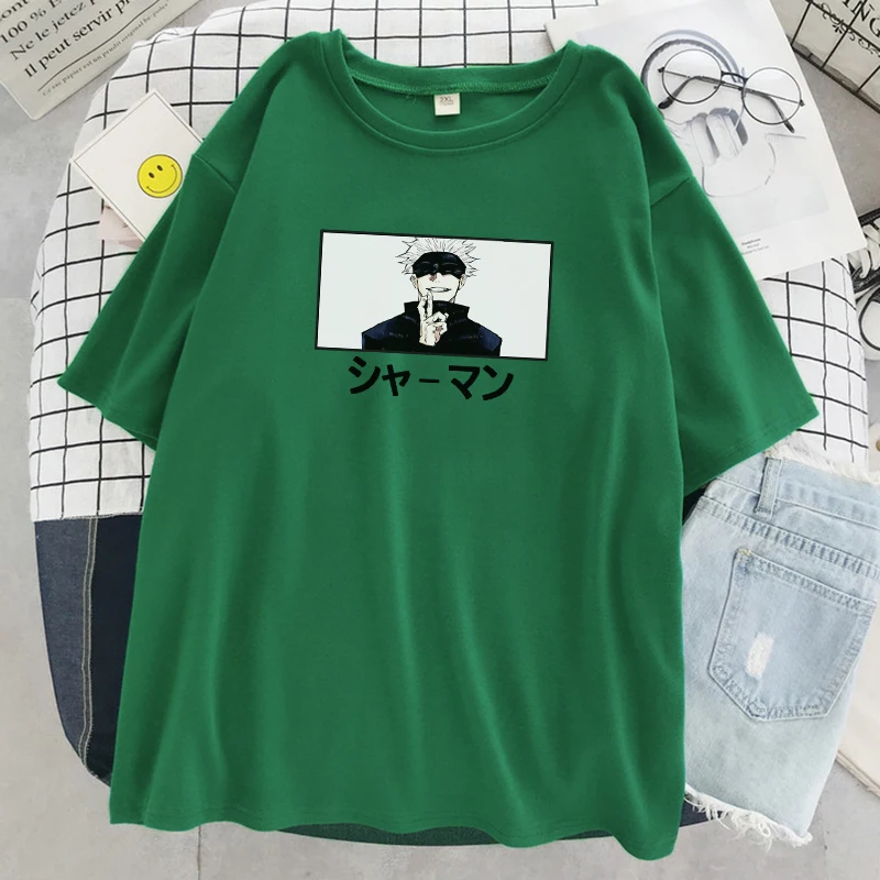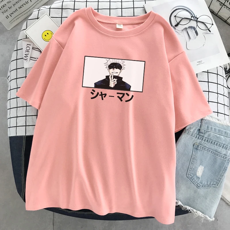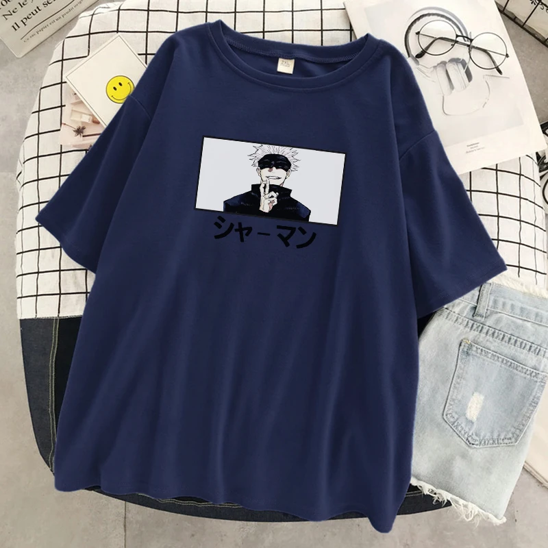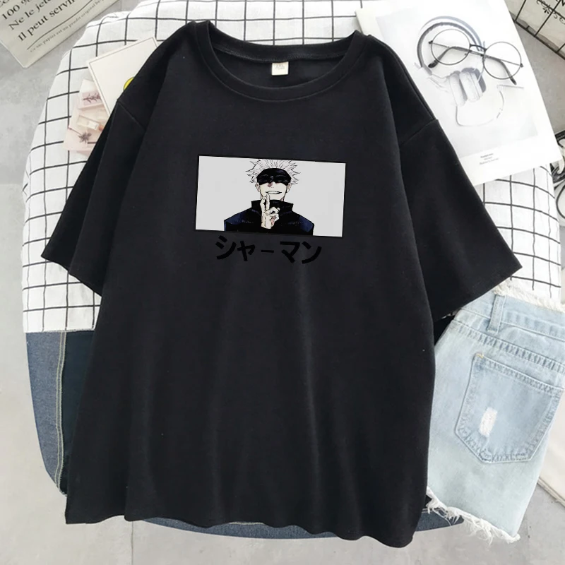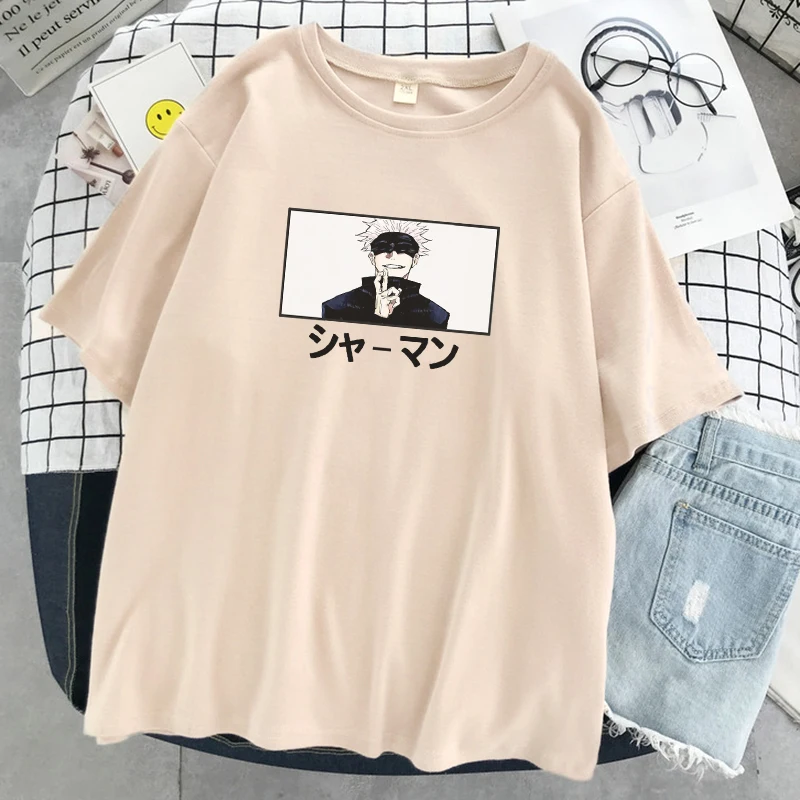 Футболки в стиле японского аниме, летняя повседневная футболка, дышащие свободные женские футболки с принтом в виде дракона, годзо, шамана