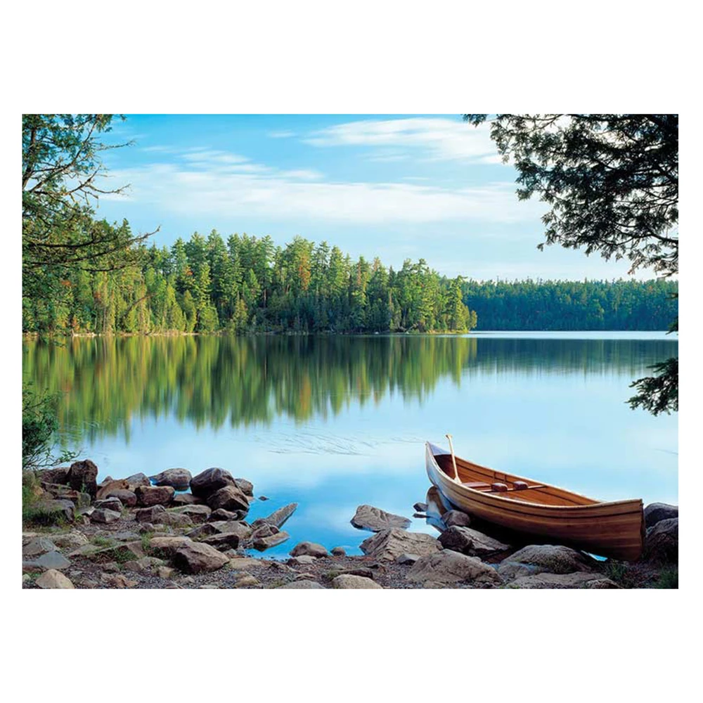 Алмазная вышивка LZAIQIZG с изображением лодки, весеннего озера, живописные алмазные картины, полный квадратныйкруглый пейзаж, картина Стразы, домашний декор