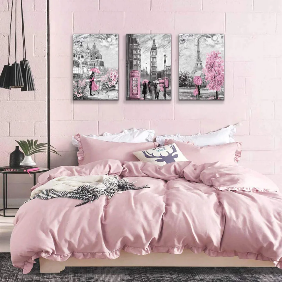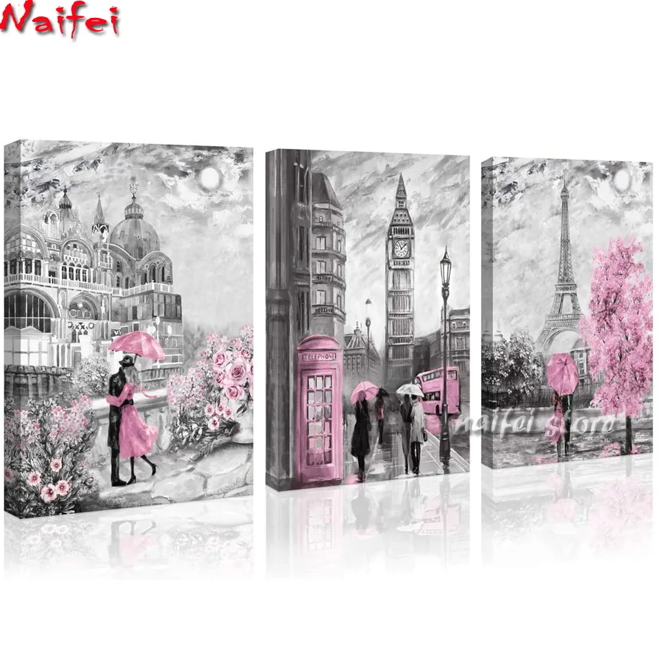 Парижская башня Розовый декор для влюбленных 5D DIY Алмазная картина полностью квадратная Алмазная вышивка, портрет Алмазная мозаика Триптих