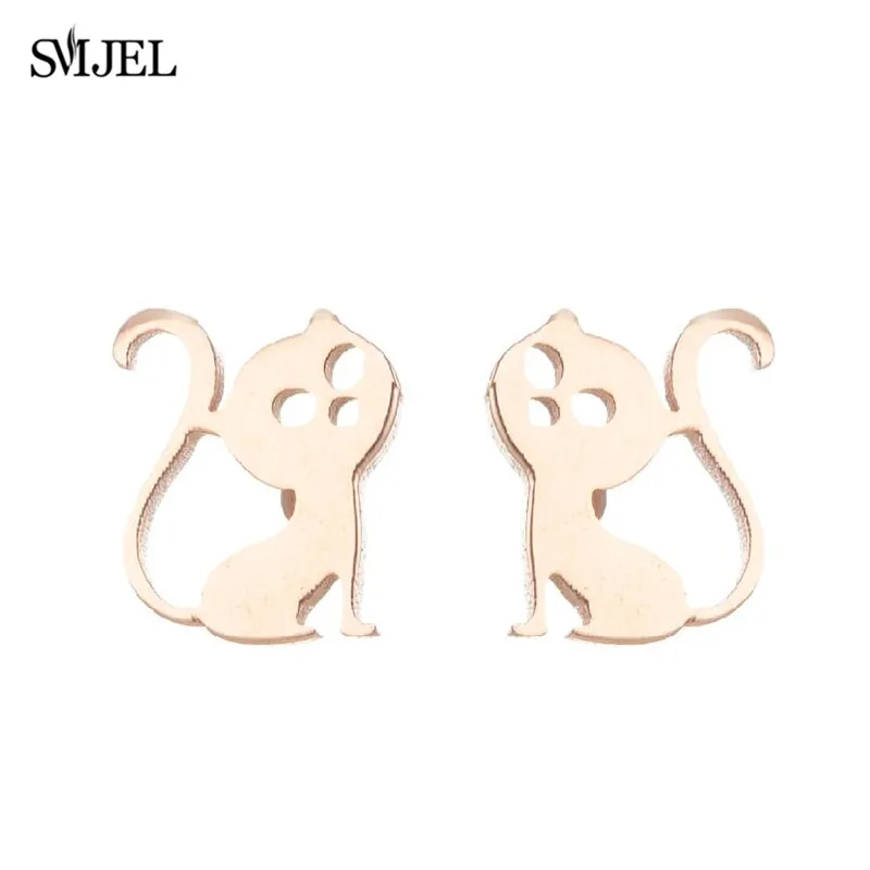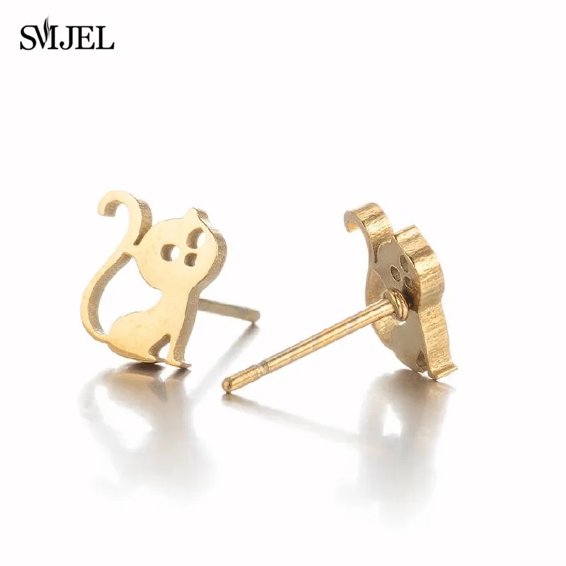 Маленькие Мультяшные серьги в виде животных для женщин, модные серьги из нержавеющей стали в виде лап кролика, совы, собаки, кошки, украшения для собак, Детские гвоздики