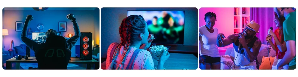 С 16 миллионов вариантов цвета, вы можете выбрать любой цвет, чтобы удовлетворить ваши потребности и синхронизировать лампу с вашими особыми моментами. Пусть цвета сделают ваш фильм особенным или вечерние.