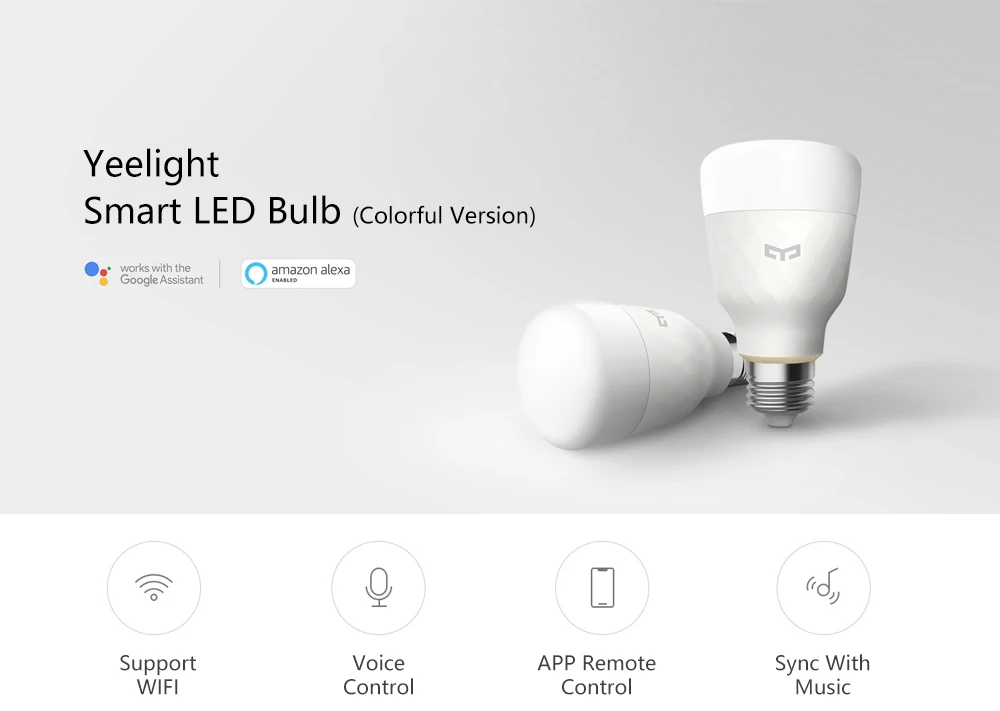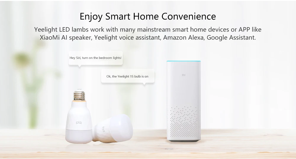 Лампа Yeelight 1S работает с вашими любимыми голосовыми помощниками и смарт-домашними платформами, такими как Ok Google, Amazon Alexa, Apple Homekit, Samsung SmartThings, XiaoMi AI Speaker, Yeelight voice Assistant и т. д.