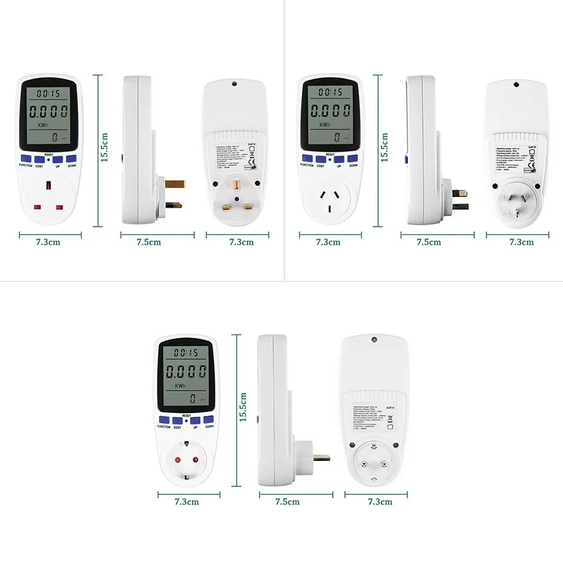 Измеритель мощности с ЖК-дисплеем, 220 В переменного тока, ЕС, кВтч счетчик энергии Вт, для США, Великобритании, Австралии, BR